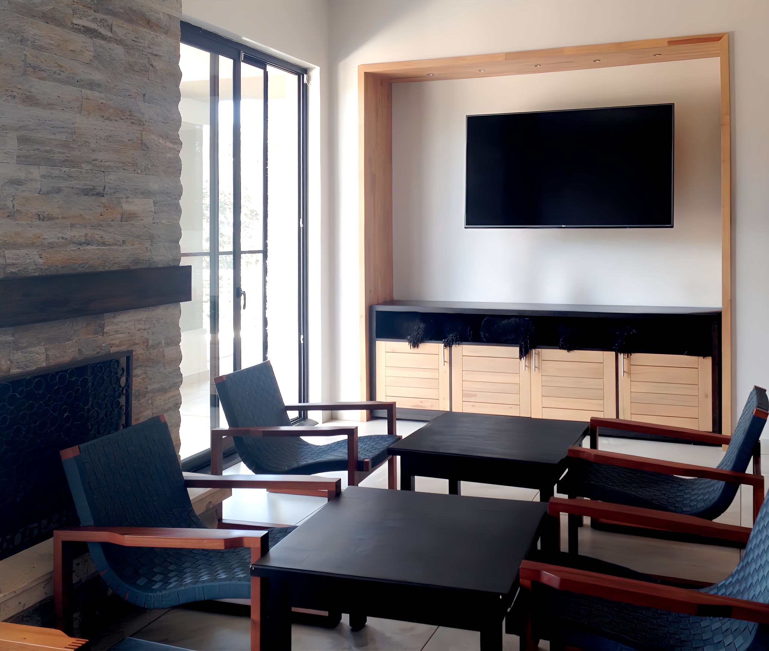 El proyecto comenzó en fase de construcción, ofreciendo asesoría a la propiedad de los diferentes revestimientos y acabados. Posteriormente, se desarrolló el proyecto completo de interiorismo de áreas clave, abarcando el bar, baños, terraza, zona de piscina y sus instalaciones complementarias, como vestuarios y sala de masaje.